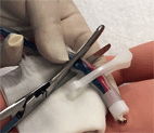 胎盤ちゃんとさいたいくんを使用して、臍帯結紮から切断と胎盤娩出までの一連の演習が可能です。胎盤ちゃんとさいたいくんは簡単に接続が可能です。また、さいたいくんの紐付きキャップを使用して既存の胎児人形や胎盤モデルに接続することが可能です*1。